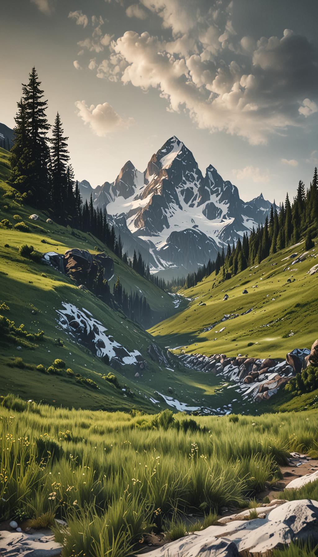 Alpine Meadow With Snow Peaks - High quality 4K wallpaper