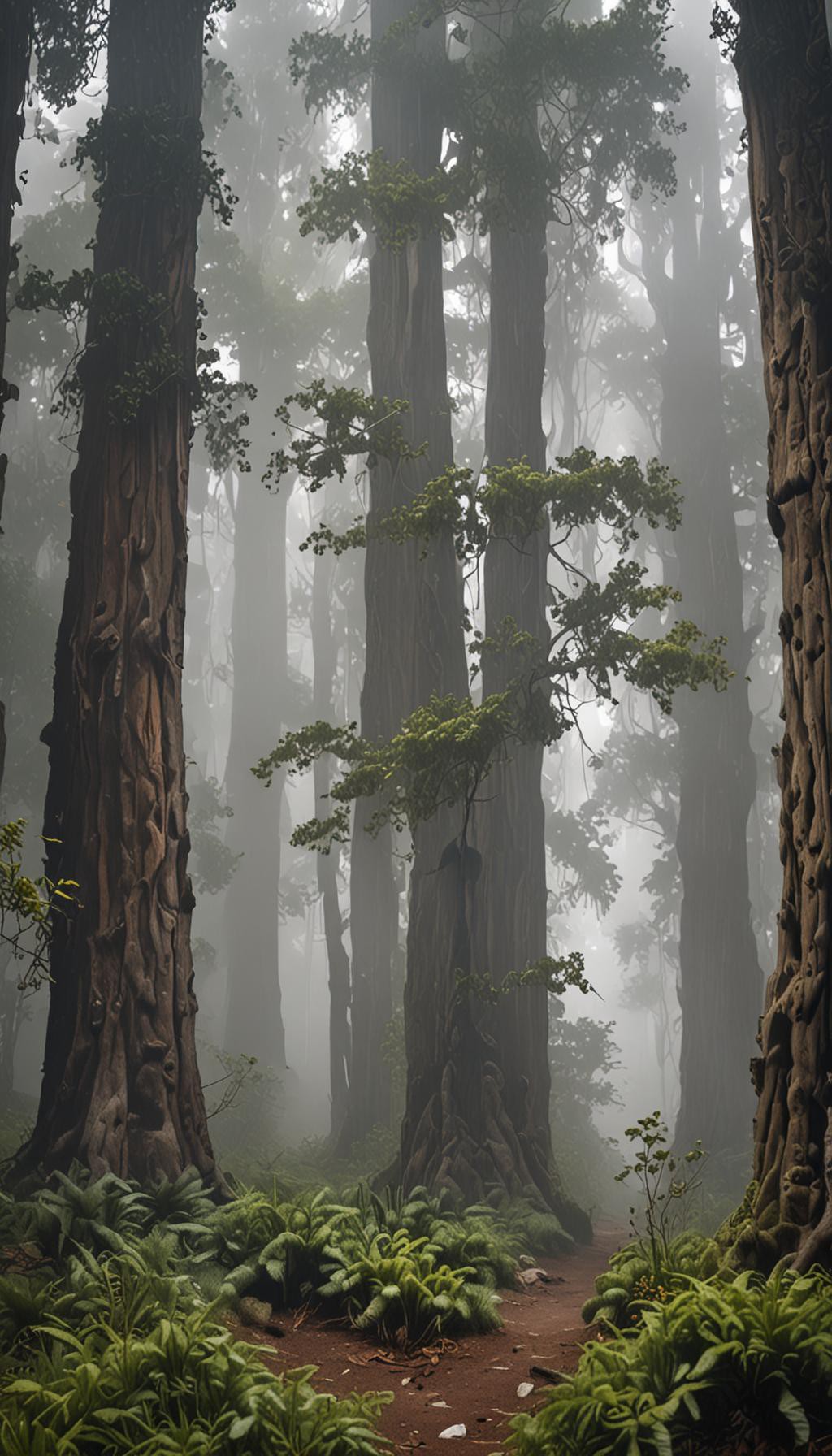 Ancient Redwood Forest in Morning Fog - High quality 4K wallpaper