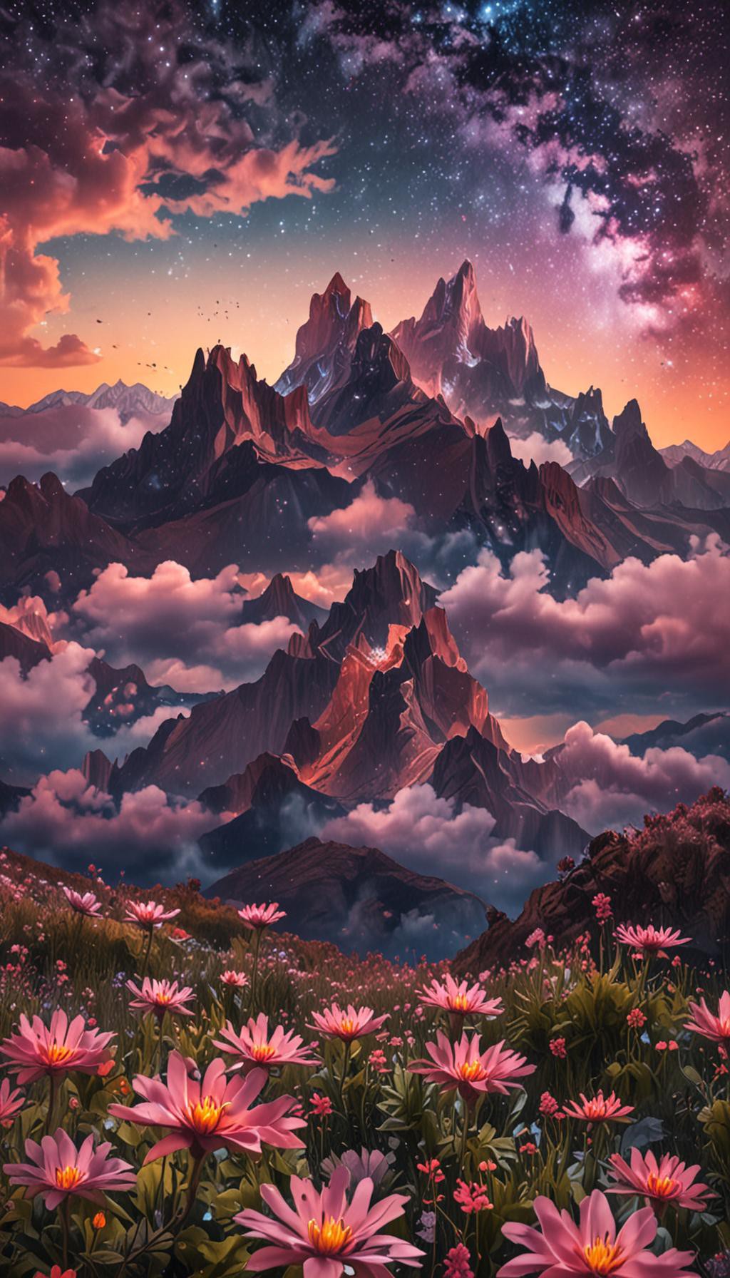 Celestial Mountain Bloom - High quality 4K wallpaper