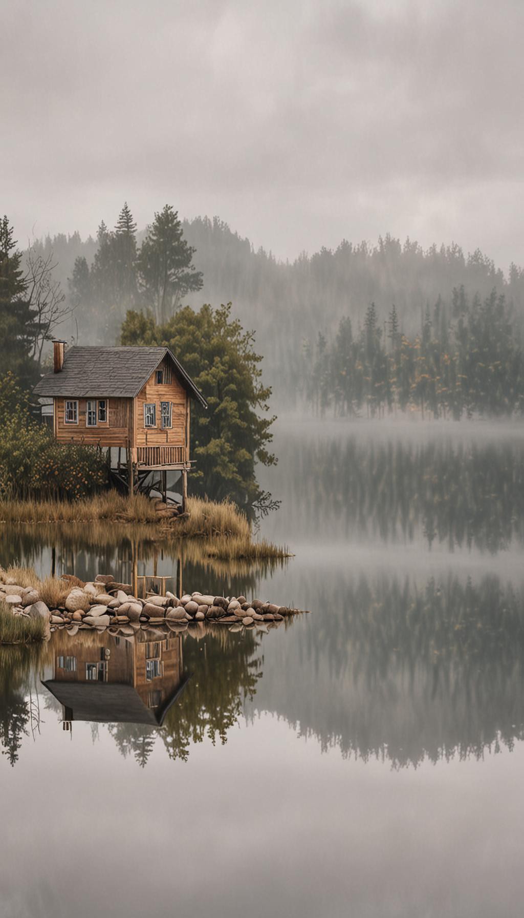Cozy Lake House Reflection (iPhone Safe) - High quality 4K wallpaper