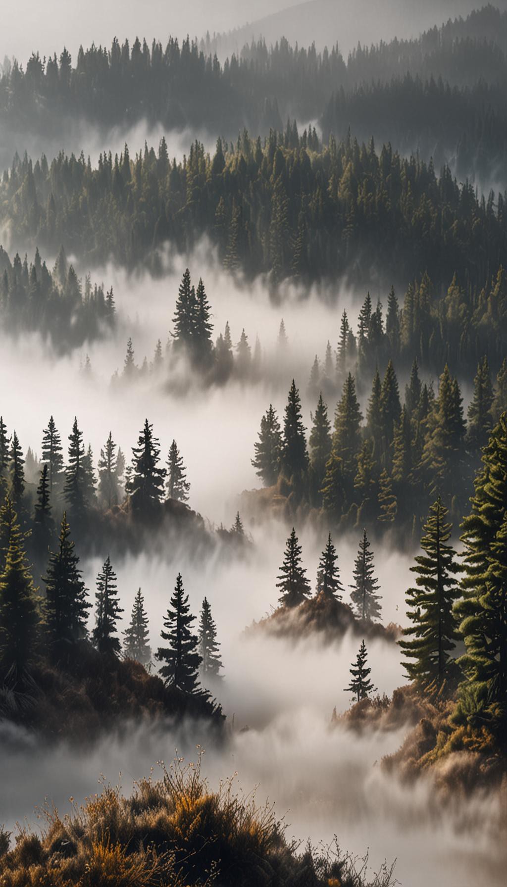Dense Fog in Pine Valley - High quality 4K wallpaper