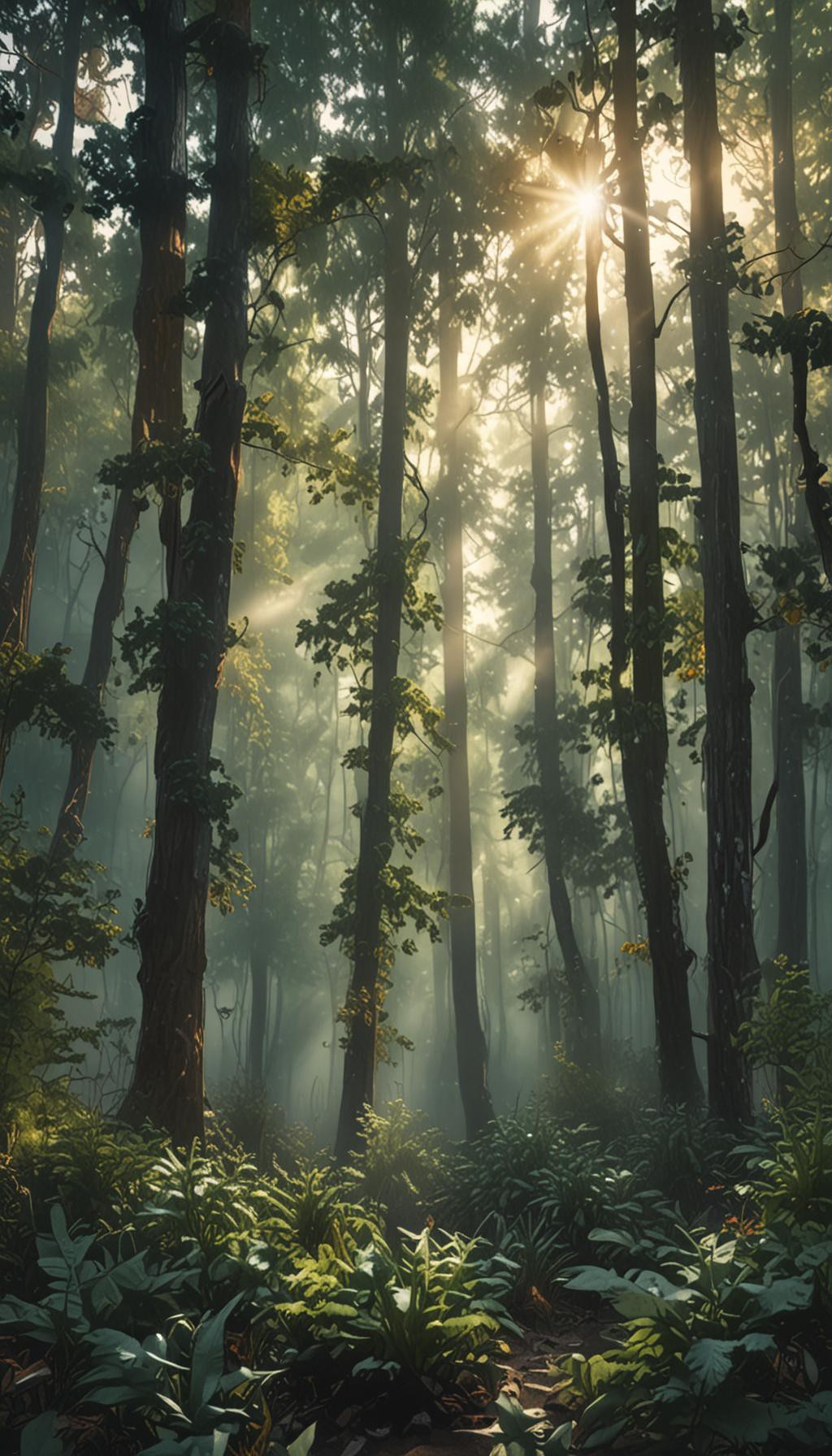 Emerald Forest Light Beams - High quality 4K wallpaper