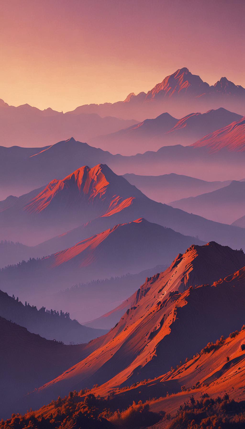 Beautiful minimalist mountain wallpaper with stunning sunset gradient colors. Features clean lines and geometric layers perfect for modern aesthetics. Available in 4K HD resolution for desktop, laptop, and mobile devices. Free download.
