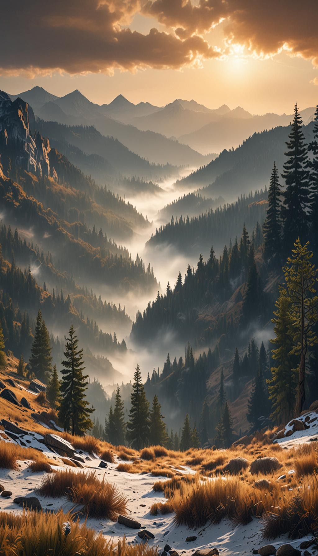 Misty Alpine Sunrise Valley – Ultra Realistic Nature Wallpaper
