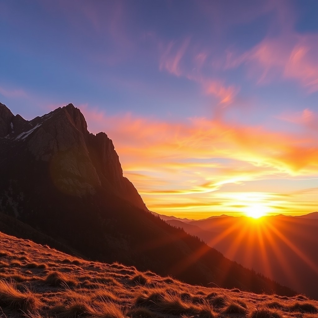 Mountain Sunset Landscape 4K - High quality 4K wallpaper, mountain sunset landscape, ultra high quality, 8k resolution, professional photography, dramatic lighting, vivid colors