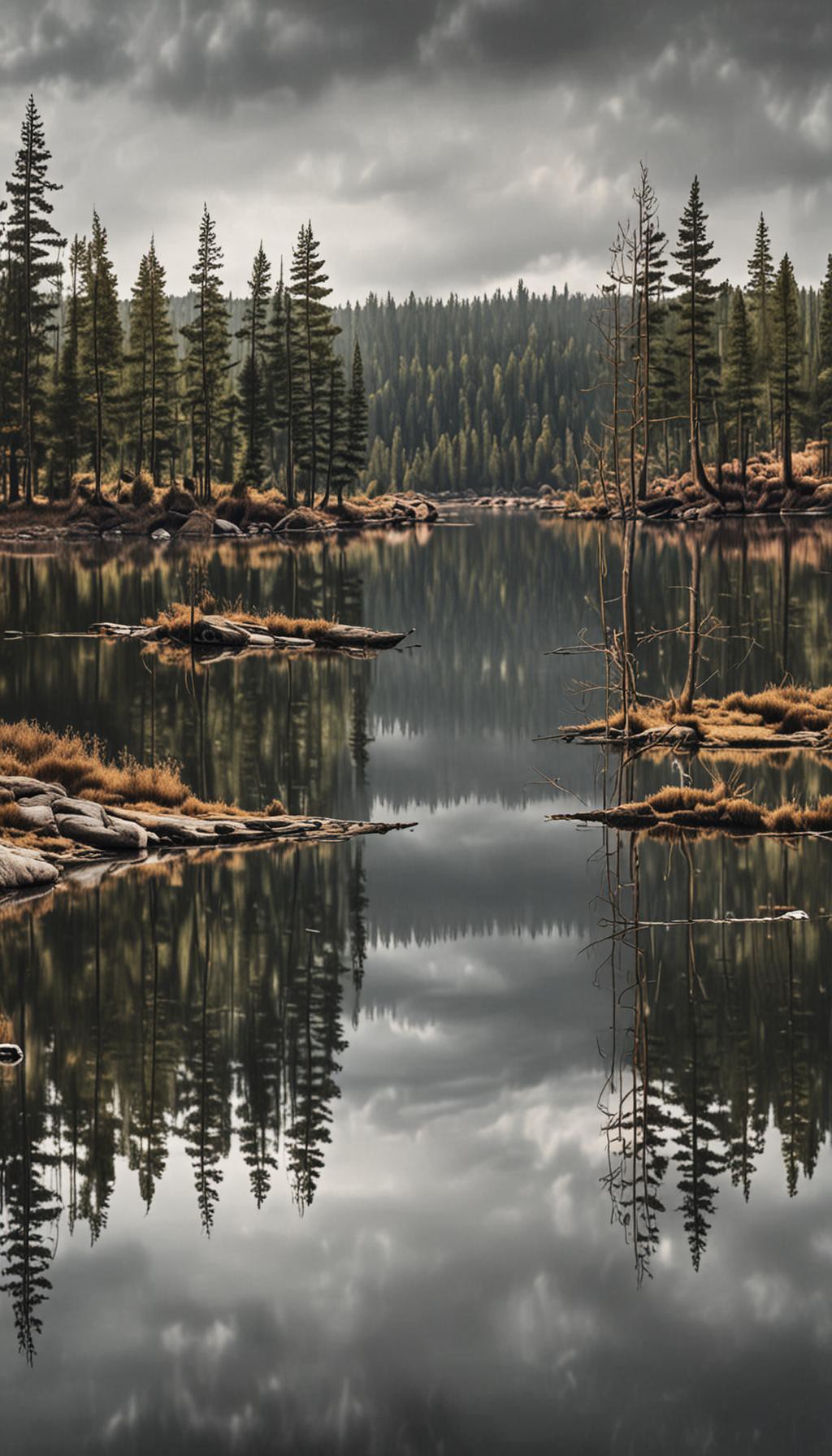 Nordic Lake Calm – Muted Tones Nature Wallpaper - High quality 4K wallpaper