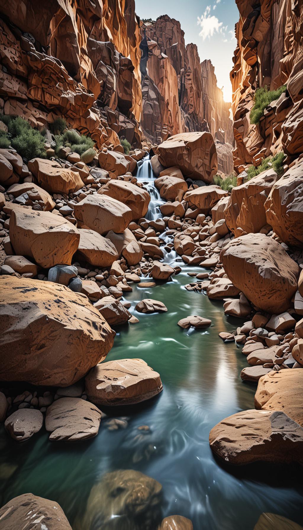 A refreshing canyon river scene with lifelike clarity. Designed for immersive 4K and 8K wallpapers.