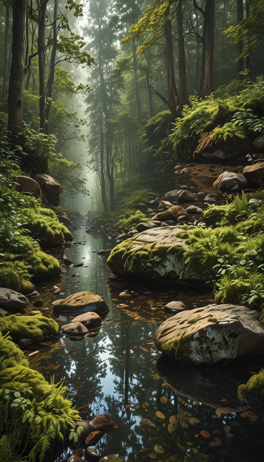 Serene Nordic Forest River – Photorealistic Nature Wallpaper