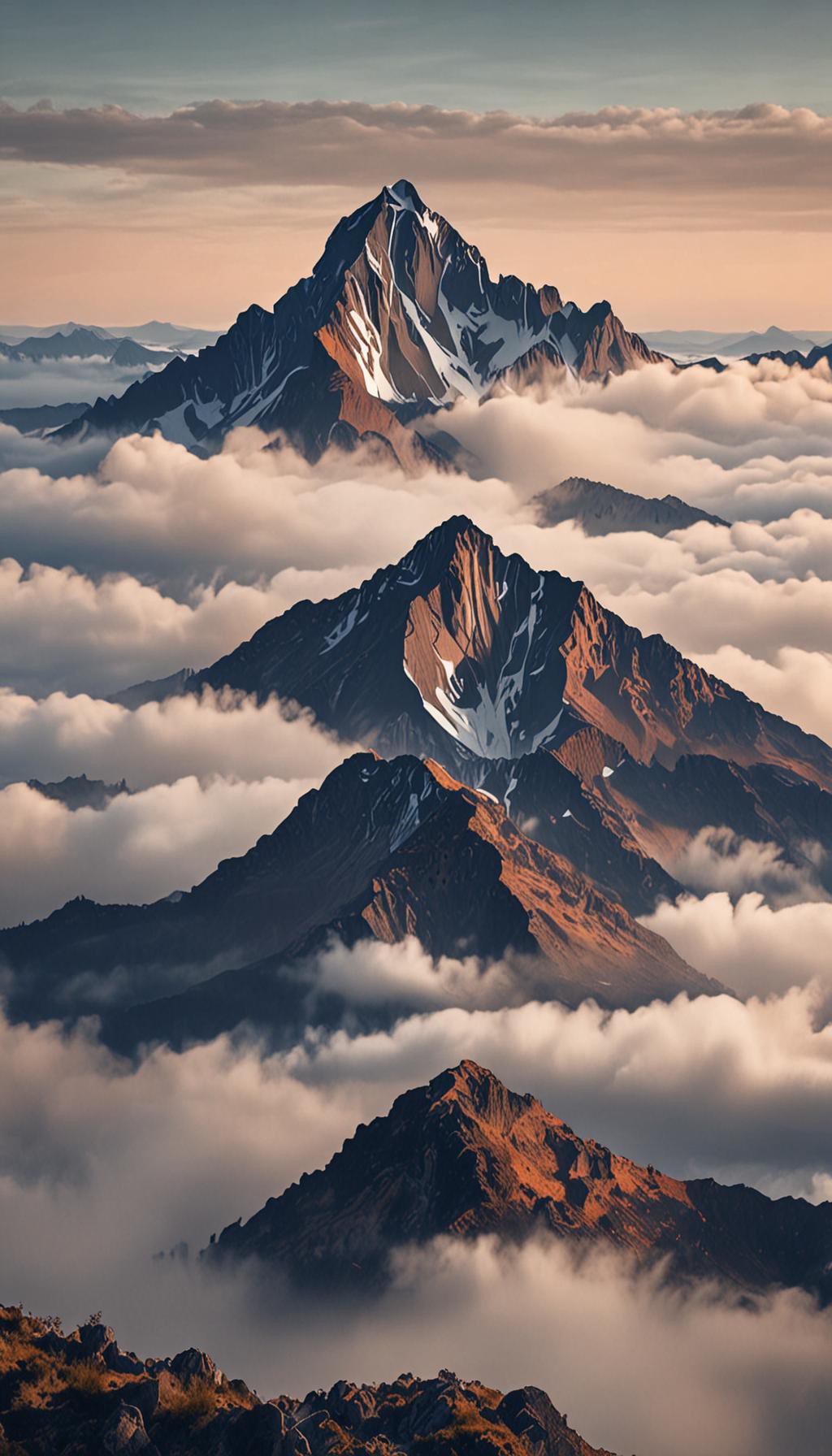 Vertical Mountain Peak Above Clouds - High quality 4K wallpaper