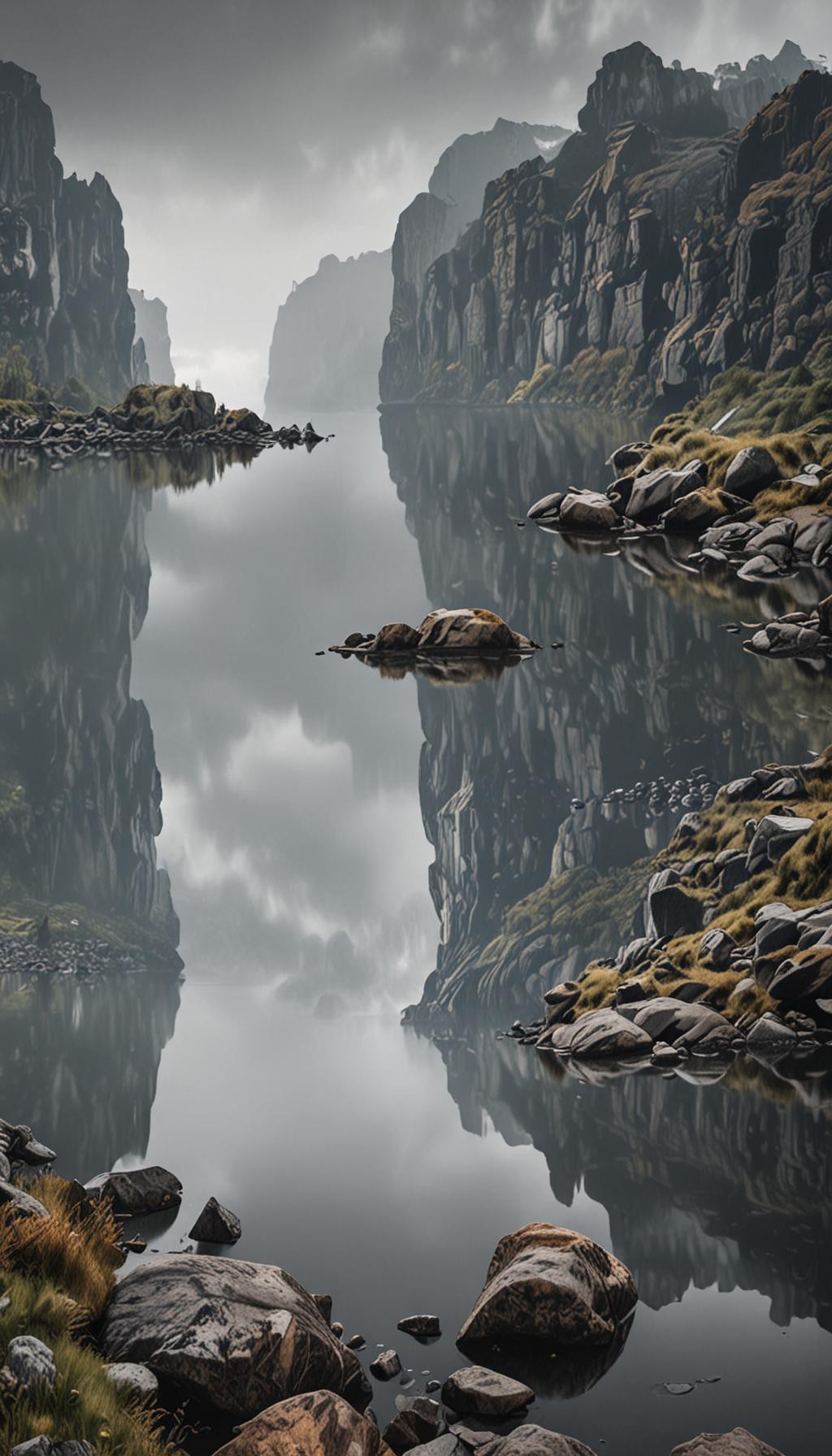 Vertical Nordic Fjord Morning Fog