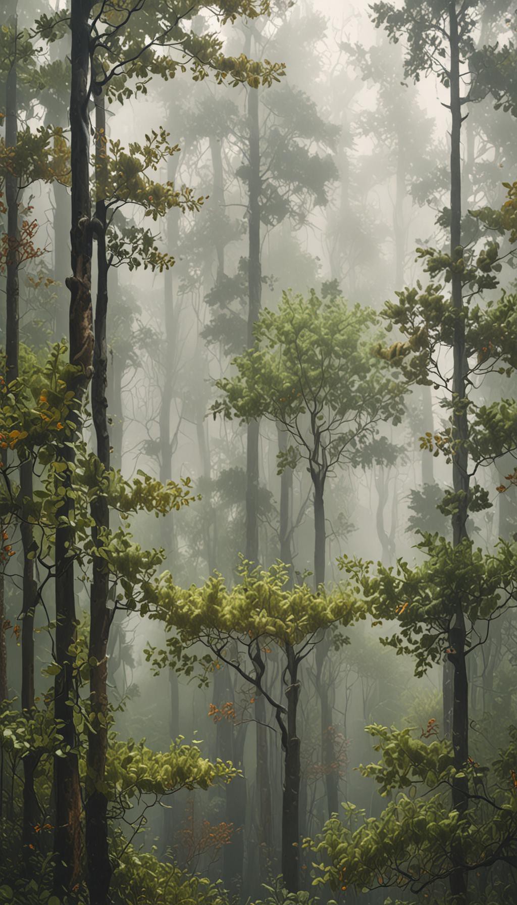 Warm Foggy Forest Edge – Luxury Vertical Wallpaper - High quality 4K wallpaper